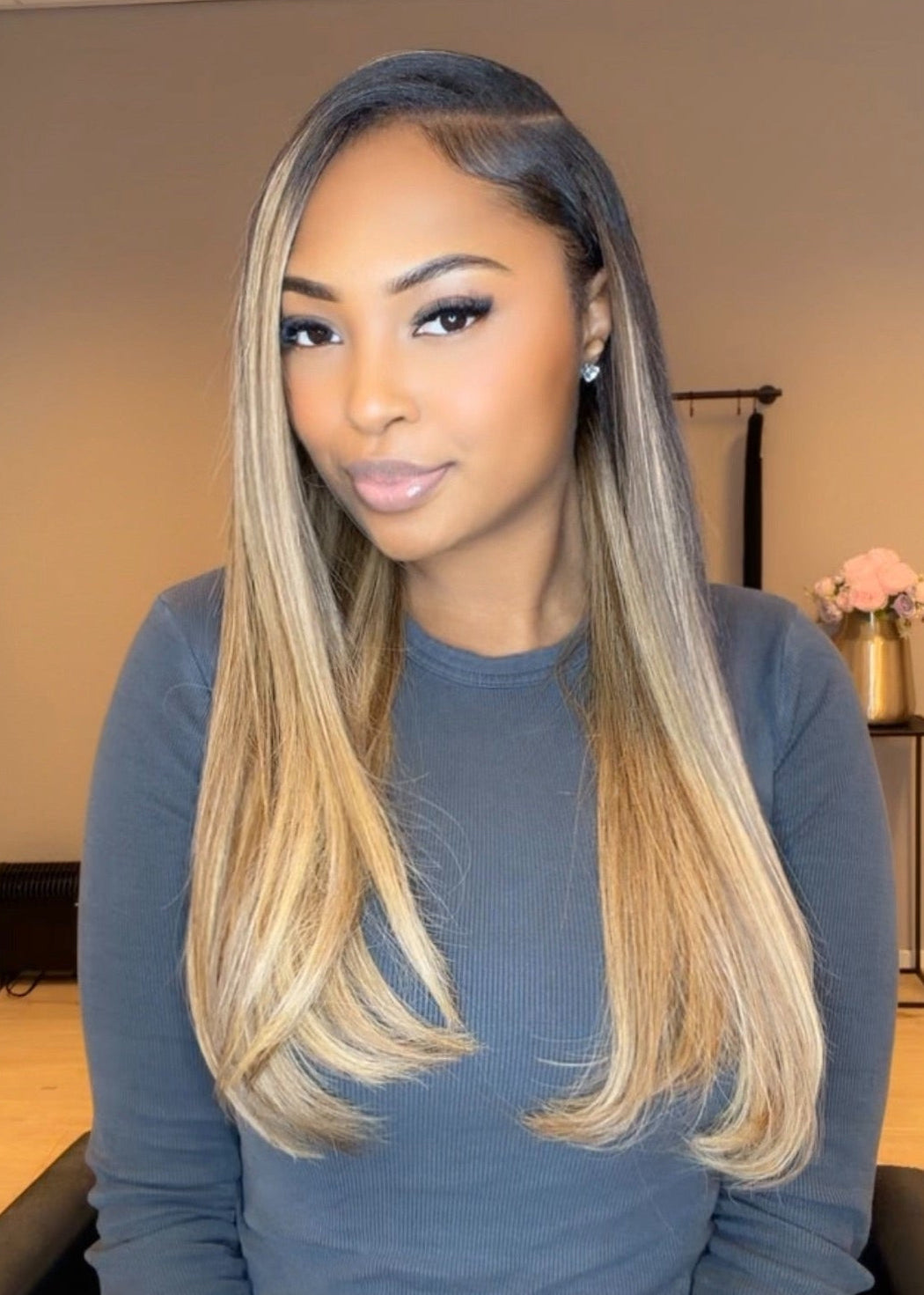 Our Honey Drip Pre-colored bundles are carefully processed and colored from one-donor raw Vietnamese hair. Each bundle is custom-made, bleached and toned from 100% authentic raw hair to achieve the bright highlighted shade while maintaining softness and strength. Super double drawn for extra fullness from top to bottom, and a smooth, luxurious finish.